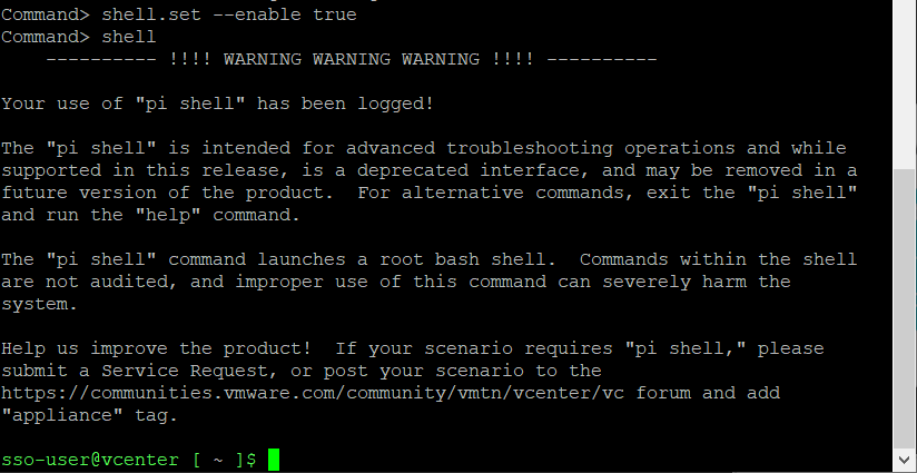 SSO hesaplarınızdan birine hala erişiminiz varsa korkmayın, sorununuz için bir çözüm var. Sadece vCenter’ınıza bir SSH bağlantısı açın ve örneğin SSO yönetici hesabınızla oturum açın. Giriş yaptıktan sonra aşağıdaki komutları çalıştırmaya başlayın.